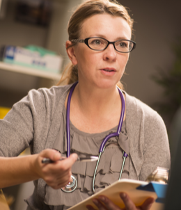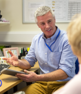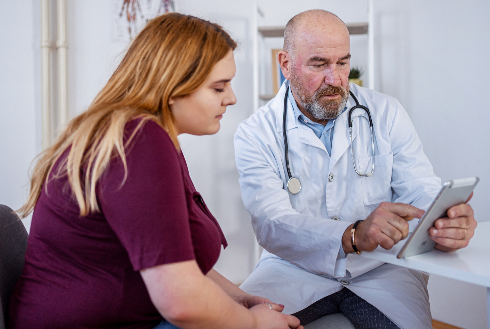 Mrs. Jansen has an appointment at the UMCG. At home, she has filled in the questionnaire about her lifestyle via the patient portal again. The last time she visited the dietician she scored red on the nutrition domain. Her sodium excretion was also too high. [...] During the consultation, the doctor turns his screen towards her...